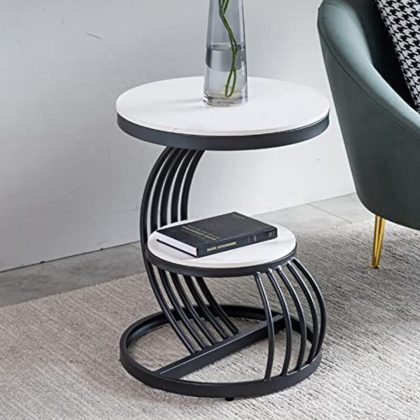 Side End Table Frame Sofa Corner Table for Living Room Coffee Table Striped Top and Metal Frame Sofa Table End Table, Bedroom Simple (Black White)